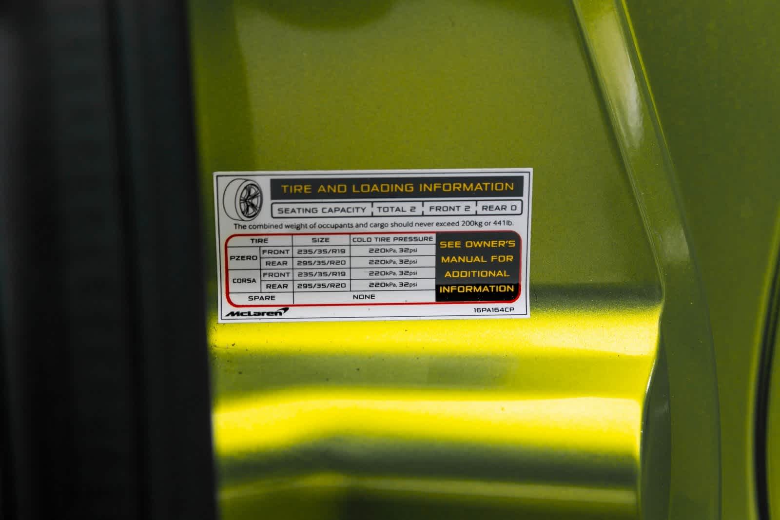 Flux Green Paint, ABS brakes, Alloy wheels, Bowers & Wilkins 12-Speaker Audio System, Car Cover, Compass, Electronic Stability Control, Flux Green Brake Calipers, Front dual zone A/C, Heated door mirrors, Illuminated entry, Low tire pressure warning, McLaren Branded Floor Mat Set, Navigation System, Remote keyless entry, Technology Pack, Traction control, Vehicle Lift, Wheels: 20 Dynamo Forged Alloy Gloss Black, Contrast Flux Green Piping, Practicality Pack, Ameria's Accessories Pack, TechLux Spec, Stealth Badge Pack, Black Pack, Sports Exhaust, Exhaust Finisher In Stealth, Bowers & Wilkins Audio System.